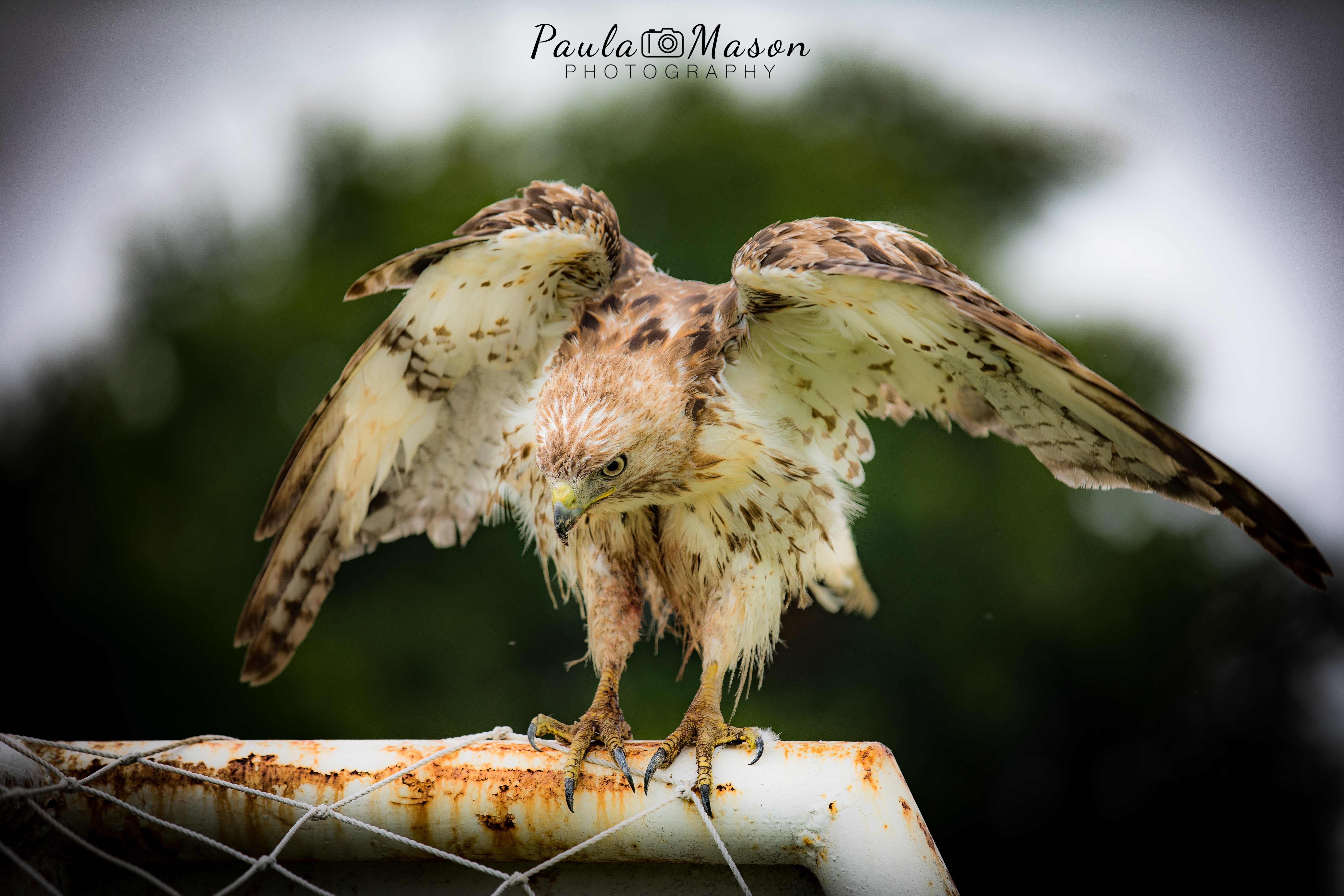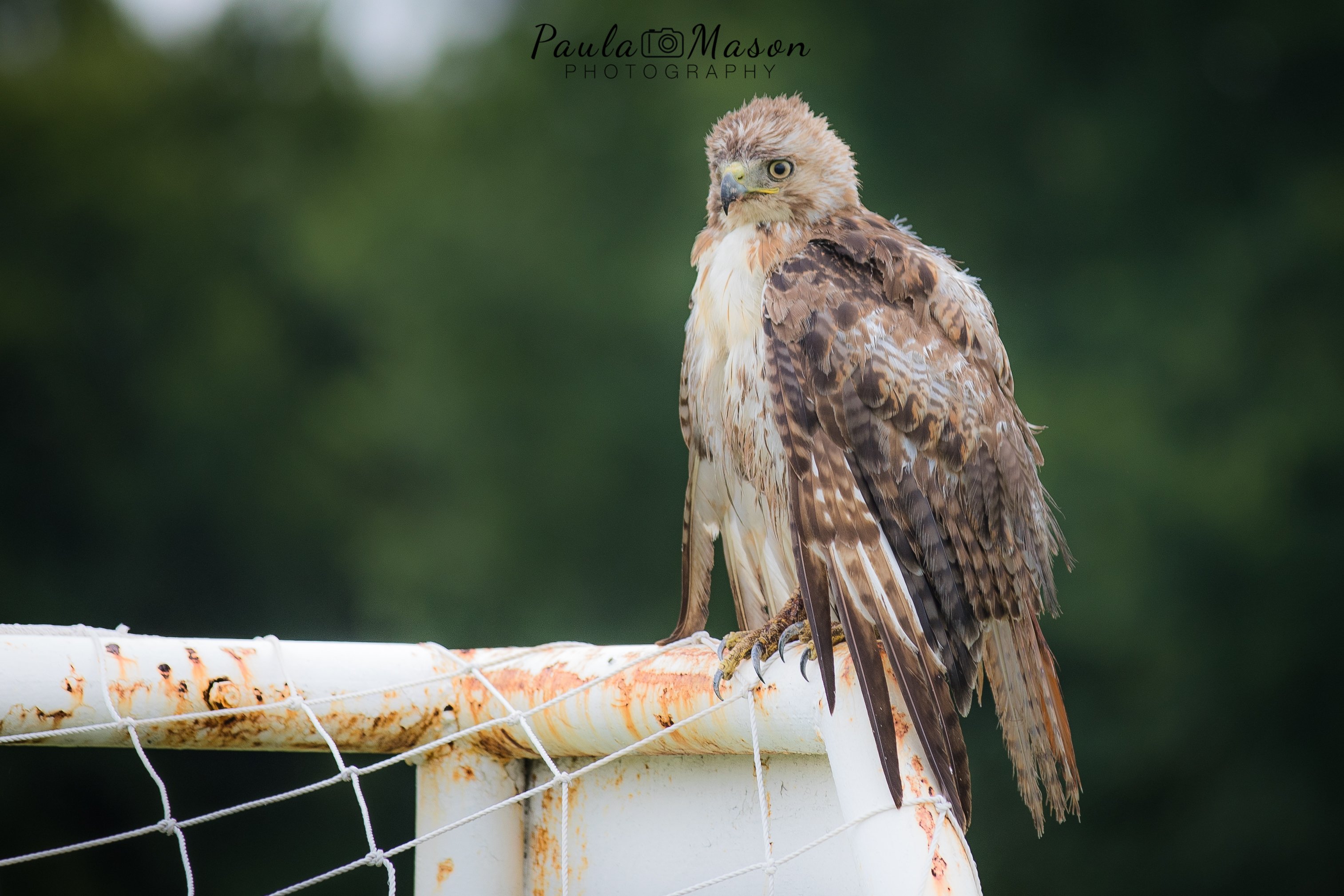 His wound looked pretty bad, but fortunately, he was still able to fly. We know this, because he flew from the top of a trashcan, to the top of a soccer goal, and then to the top of a baseball fence! It was all very exciting. Once I receive an update on him, I’ll be sure to let you know how he’s doing.