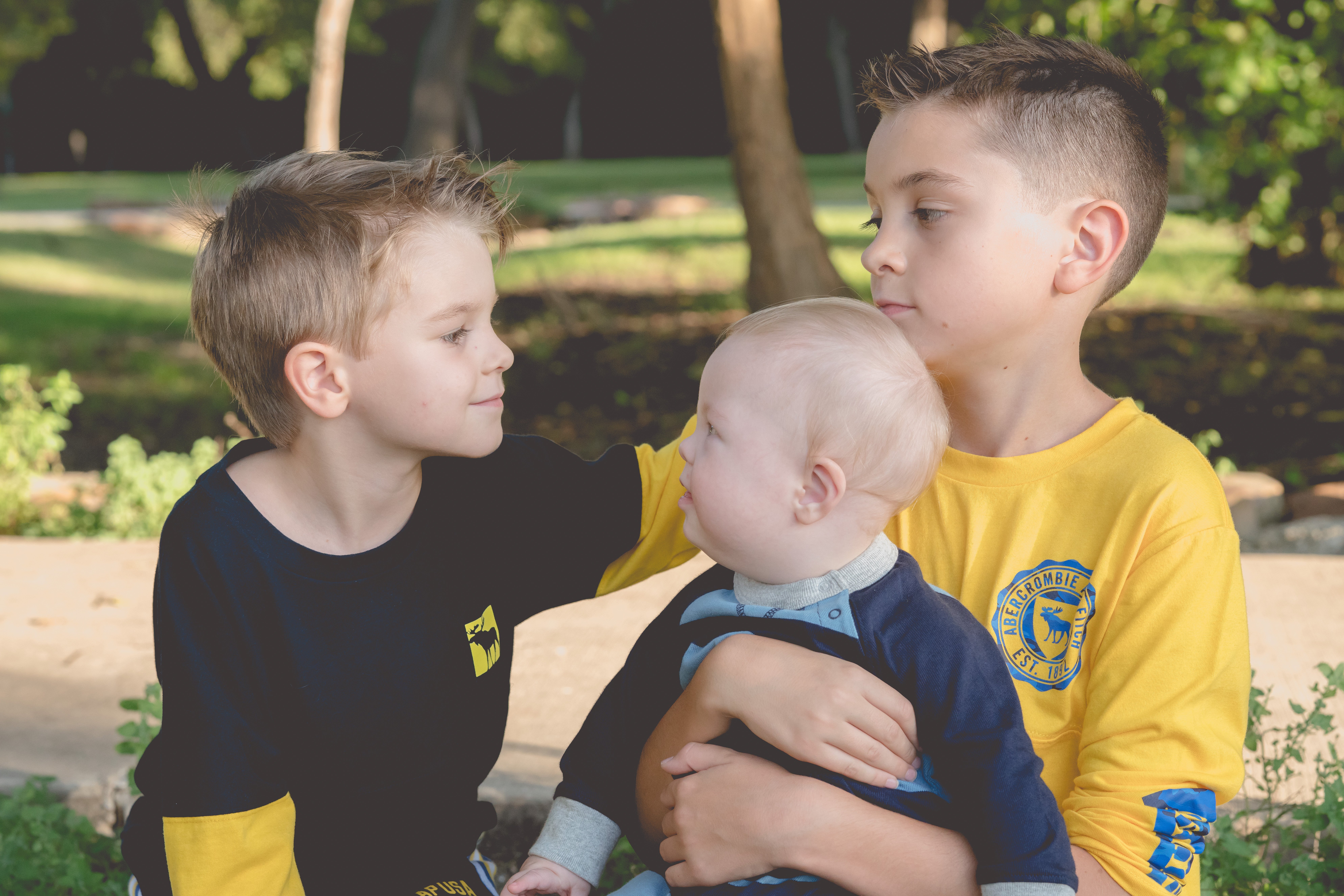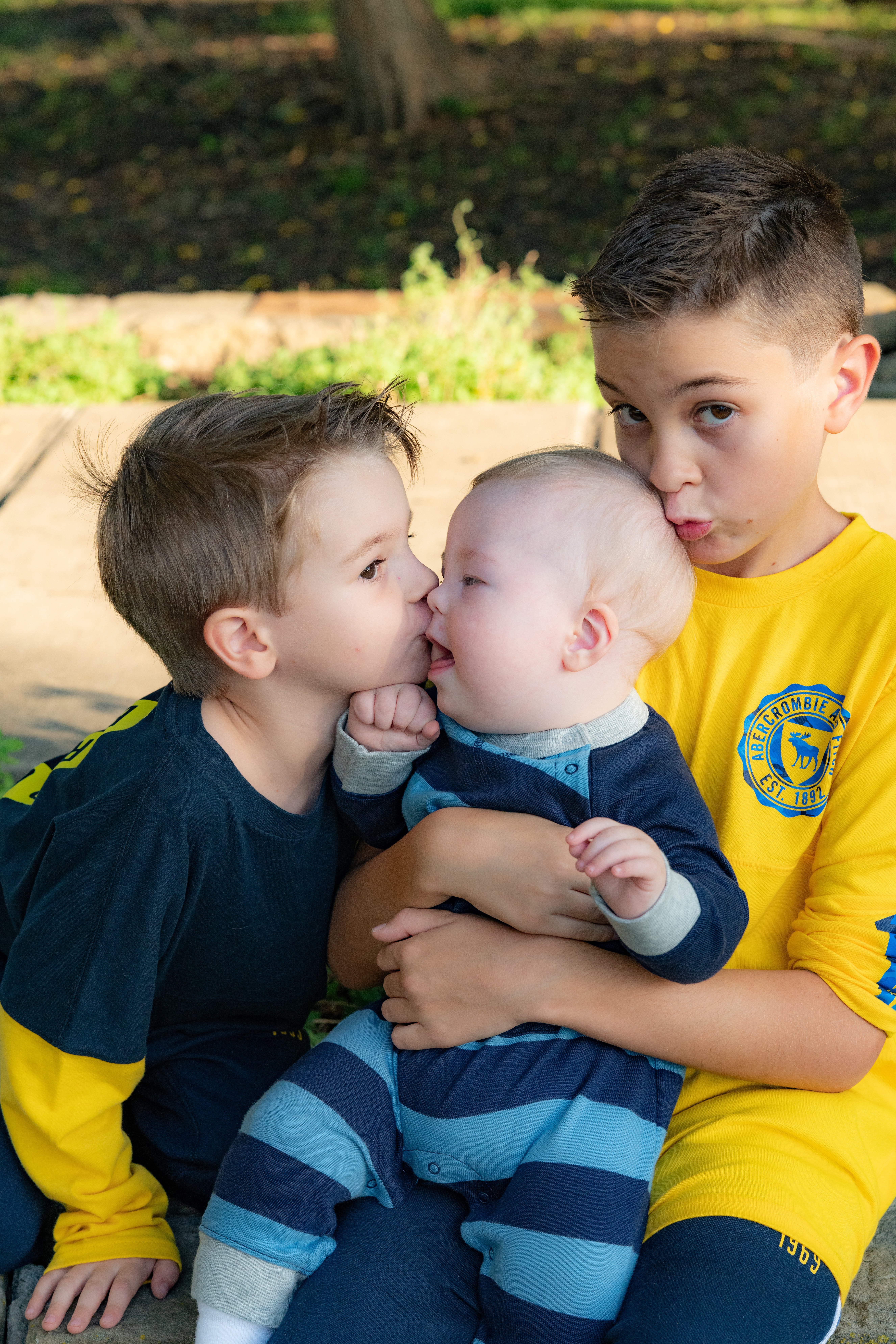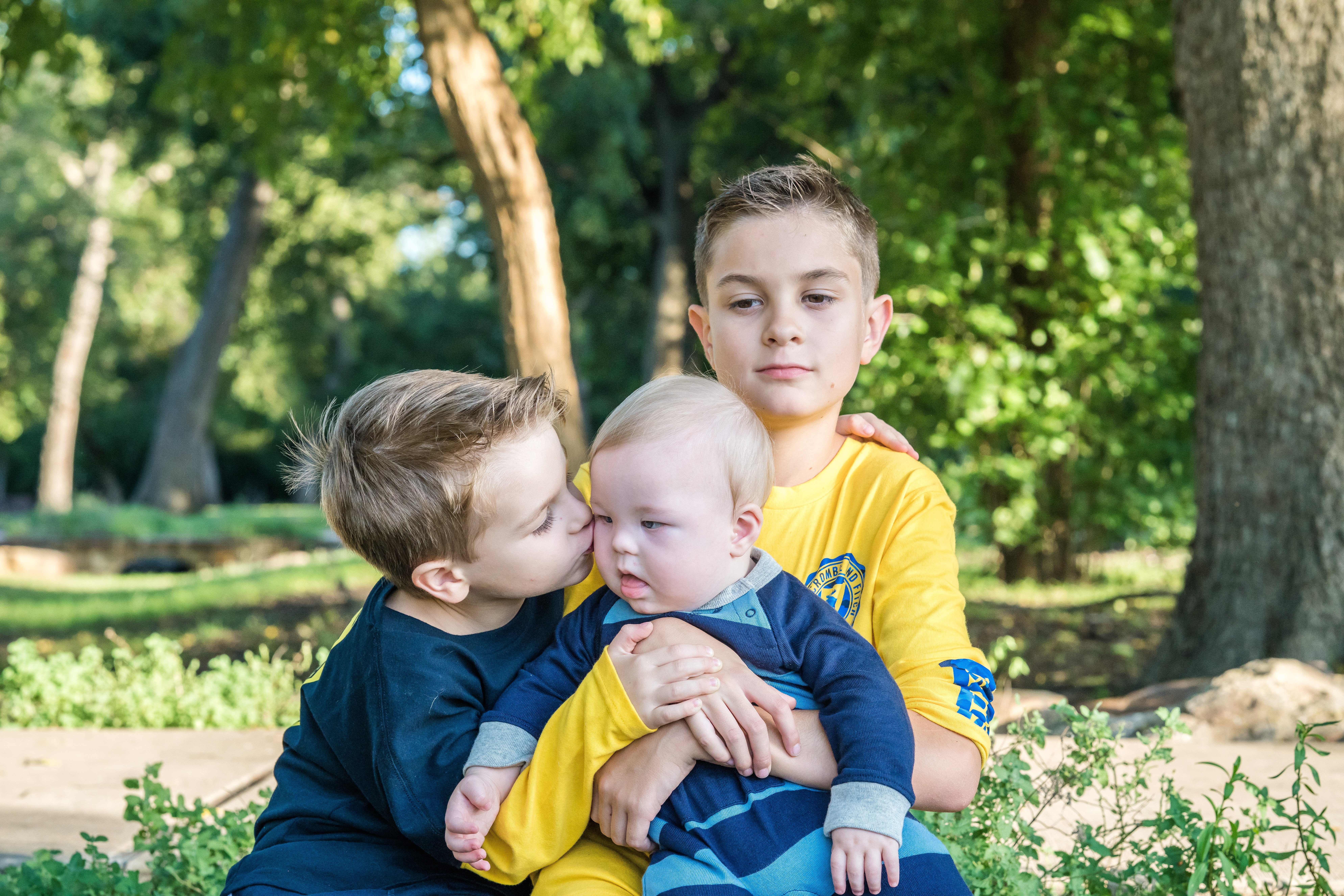 The love shown between these three boys was heartwarming! Blake, the oldest, kept a tight hold on Connor, and sweet Landon kept stealing kisses from Connor throughout the entire shoot. Connor was all smiles watching his big brothers turning his head to look at each one of them. It was so fun to watch them interact together. What lucky boys they are to have each other.